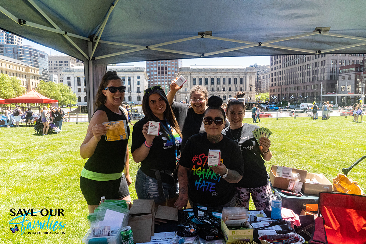 Save Our Families joined Stella Maris at Cleveland’s Pride for community outreach. Our founder joined in the march alongside members of Stella Maris staff in solidarity. We were also joined by Thrive Peer Support and Project White Butterfly for harm reduction outreach. Combined, we passed out 299 Narcan kits and over 600 fentanyl testing strips. It’s a well-known fact that members of the LGBTQIA+ community are at a higher risk for substance use, today we encouraged folks to celebrate safely by testings their drugs and carrying Narcan.